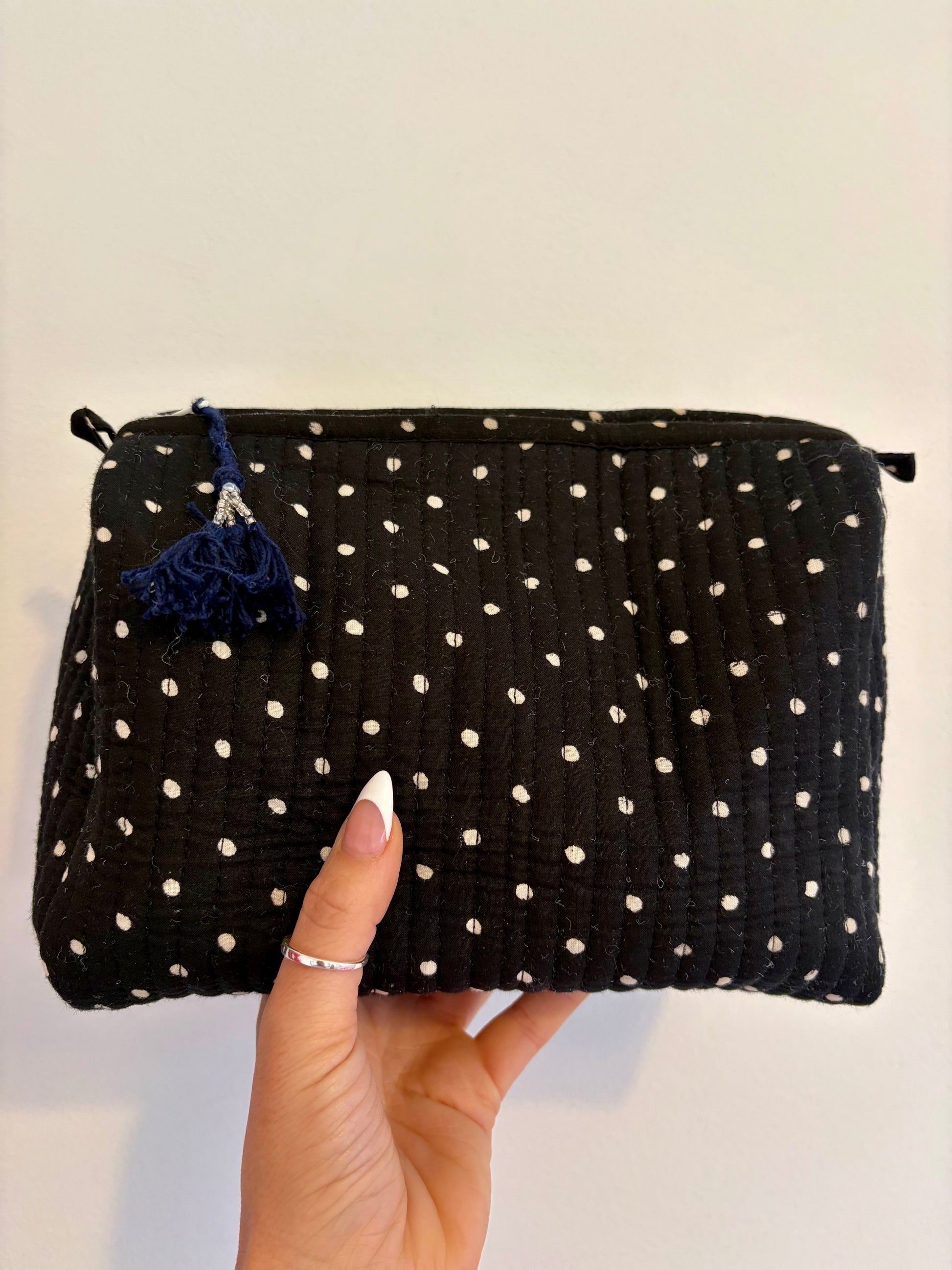 The fabrics for our bags are mostly hand-printed, which means every piece is unique—sometimes with little imperfections or ink marks that make them all the more special. If you have any queries - Please feel free to message me anytime.